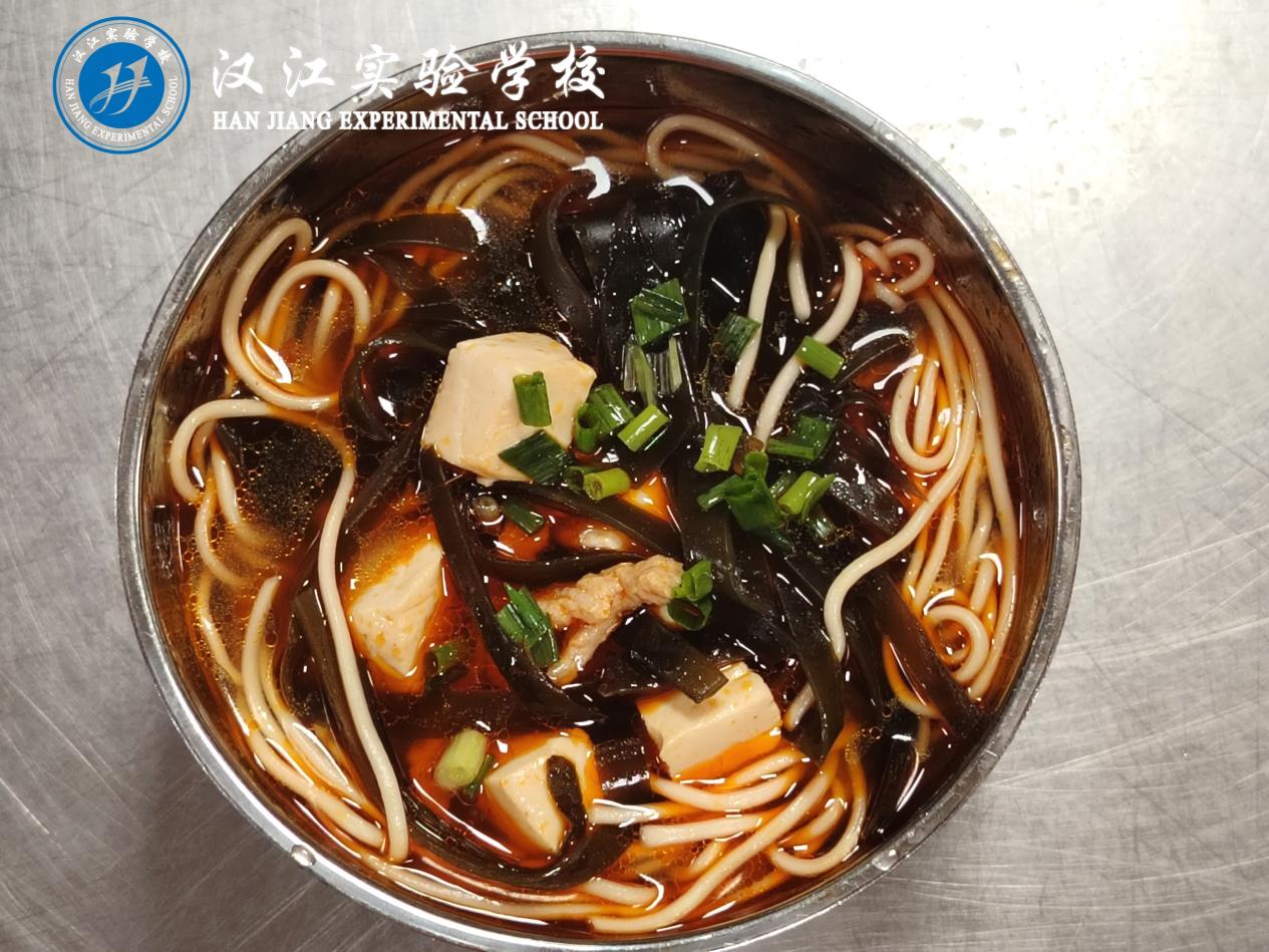 早餐:①小学部热干面、双色馒头、蒸粗粮、卤鸡蛋、炝炒海带丝、黑米粥