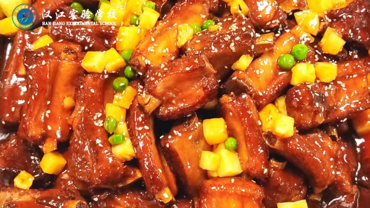 晚餐:①小学部杂粮炒饭、果脯发糕、鼓油牛心包菜、土豆肉丝、苹果红枣汤