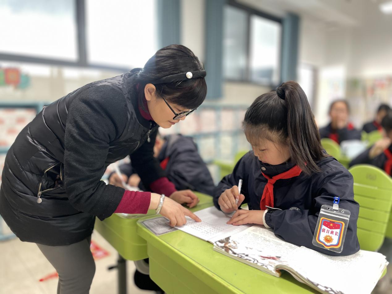 双管齐下,课后细心。课后是巩固提高的最好时机。她一方面结合学习内容,让学生拓展延伸课外阅读,增加语文阅读量,增长见识;布置有趣味的课后练习,围绕生活开展小练笔,提升学生的写作水平。一方面针对课堂中暴露出来的问题,及时请教专家,写好课后反思,避免出现类似问题;对课堂中灵感迸发出来的激情闪光点,也会写好教学随笔,总结提升,完善教学设计,提升教学水平。