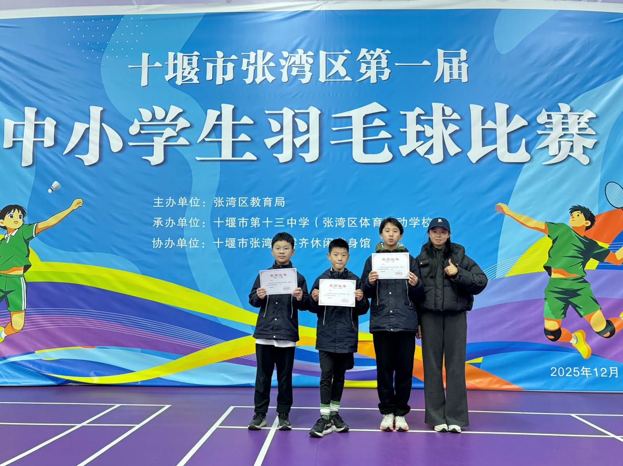 同期举办的张湾区第一届中小学生羽毛球比赛中,我校羽毛球健儿同样展现出了极高的竞技水平和顽强的拼搏精神。胡潇月同学在比赛中展现了出色的技巧与沉稳的心态,一路晋级决赛;徐一恒、付允禾两位同学在激烈的竞争中稳扎稳打,成功登上领奖台;李文杰同学也发挥稳定,闯入前六,表现可圈可点。