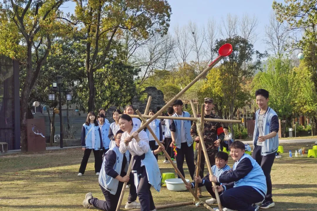 研学过程中,团队游戏让同学们在互动中增进友谊、凝聚力量。八年级学子参与同心鼓、合力建塔、罗马炮架等活动,在实操体验中学会沟通配合、互帮互助,提升团队意识与问题解决能力;四年级学子则体验飞盘运动、一锤定音、合力建塔等项目,在运动与挑战中培养规则意识、责任心与集体荣誉感,体悟团结协作的意义。