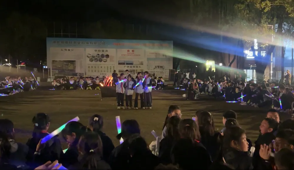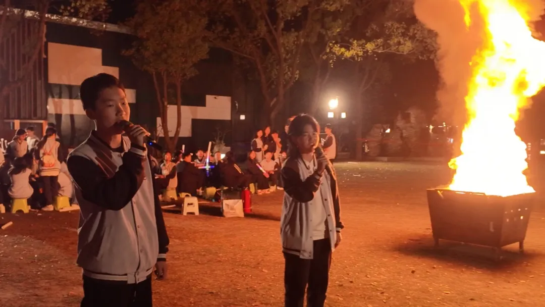 夜晚的研学营地同样精彩,同学们在星空下举办篝火晚会,围火共舞、展示才艺;集体观看红色电影《志愿军雄兵出击》,在光影中感悟英雄精神,立志传承红色基因、实现人生价值。