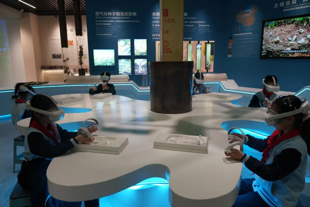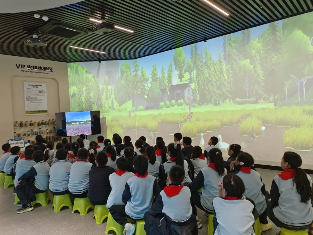 同学们走进知雨轩原生态种子科普馆,探索种子奥秘,参与 VR 沉浸式农耕体验、开展土壤生态实验,参与土壤水质监测,近距离体悟农耕文化魅力;农耕课堂上,亲手耕地,体会劳动的艰辛与快乐,树立珍惜粮食、尊重劳动的意识。