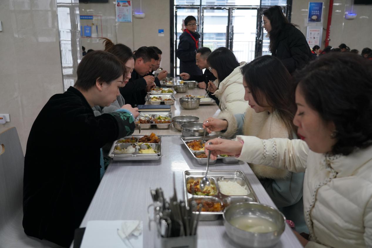 座谈会后,家长代表们深入学生食堂,与孩子们共同用餐,亲身体验餐品口味、温度及份量,直观了解学生日常就餐流程与环境。