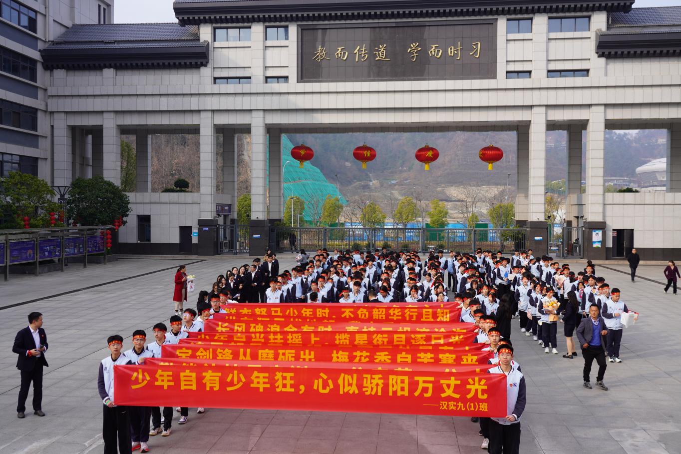 本届中考再创辉煌,优异成绩背后是师生日夜兼程的拼搏与智慧凝聚。3月,汉江实验学校隆重举行了2025届九年级中考百日誓师大会,初中部全体师生及家长、六年级学生齐聚田径场,为百日后将踏上中考战场的汉实学子加油鼓劲,吹响冲刺的号角。7月,九年级312人参加中考,全市前十名2人,全市前一百名6人,高峰计划学科特长生5人。省重点高中上线人数达227人,普通高中上线率继续保持100%的优异成绩,语文、数学、英语、物理、化学等多学科平均分稳居区域前列。