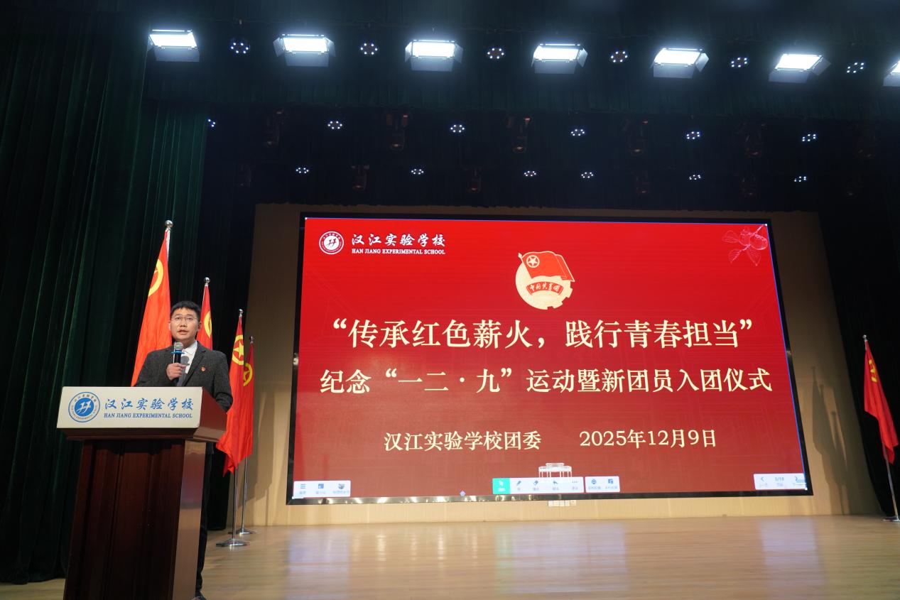 学校通过国旗课、爱国主题教育等活动,将爱国主义融入日常,滋养学子赤子之心。9月,为深切缅怀先烈,弘扬伟大抗战精神,我校组织师生分别在十堰市奥体中心、学校报告厅、各班教室集中观看“纪念中国人民抗日战争暨世界反法西斯战争胜利80周年阅兵仪式”现场直播,汉实师生共同经历了一堂深刻的爱国主义教育课。9月18日,汉江实验学校开展国防动员知识宣传教育活动。通过警报试鸣、读本赠送、学生倡议和领导总结号召等多个环节,全面提升师生国防意识与应急避险能力。12月,我校隆重举行“传承红色薪火,践行青春担当”纪念“一二·九”运动暨新团员入团仪式。全体师生以青春之名致敬历史,以昂扬姿态迈向未来。