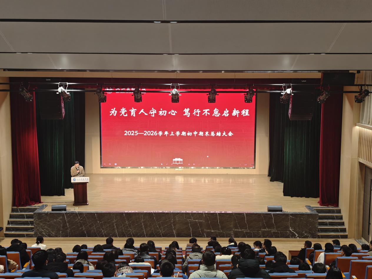 2月2日,汉江实验学校隆重召开2025-2026学年上学期期末总结大会,全面回顾一学期以来的各项工作,展望未来发展蓝图。汉江教育党总支书记陈伟、副书记朱仕竹,学校领导班子全体成员出席会议,全体教职工参加会议。大会旨在总结成绩、凝聚共识,为下学期工作的顺利开展奠定坚实基础。