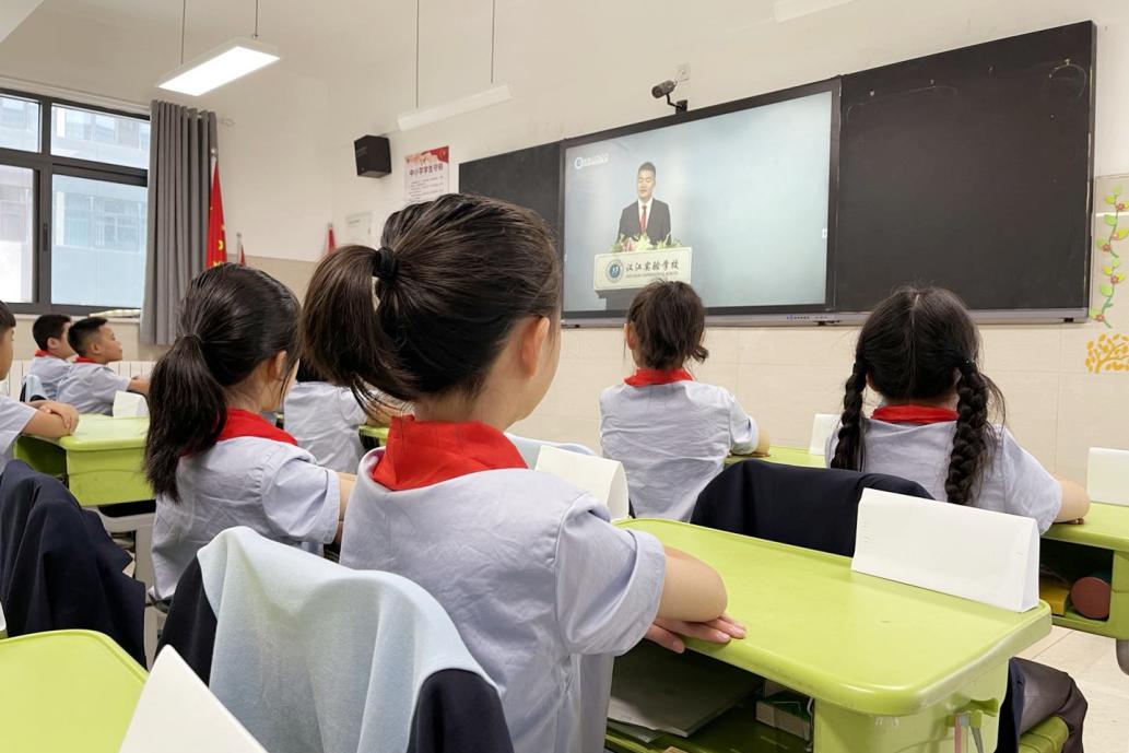 汉江实验学校小学部和初中部的孩子们返校。