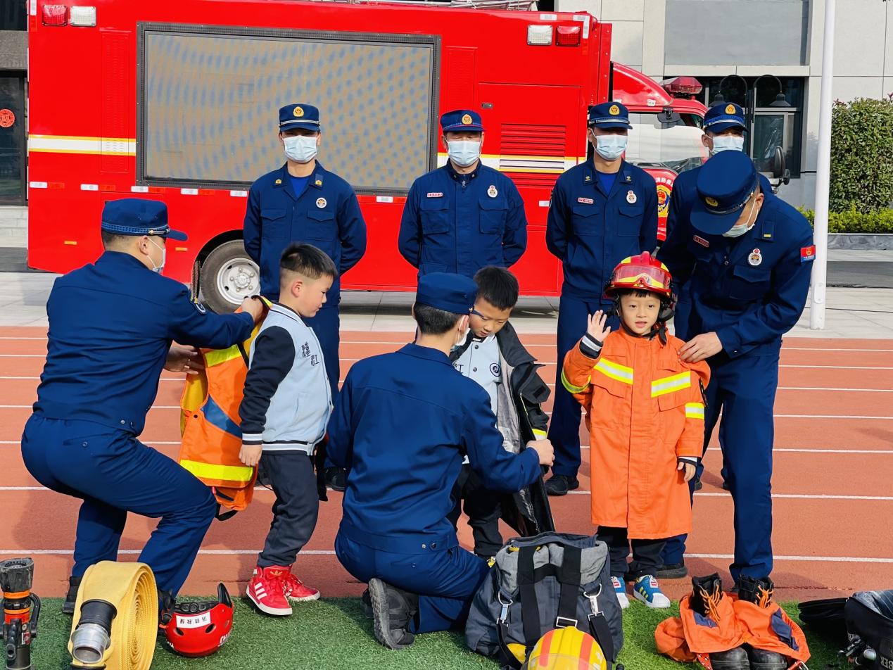 幼儿园举行了消防安全进校园,携手共筑“防火墙”的国际消防日主题活动。