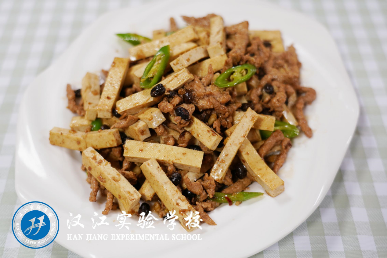 早餐:鲜肉包子(1—3年级)、武汉豆皮(4—6年级)、煮鸡蛋、炒香干丁、三色包菜丝、甜豆浆