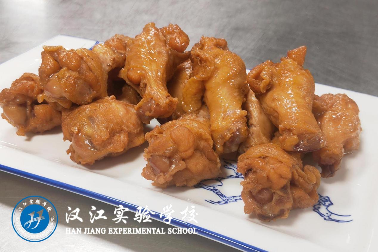 中餐:五香卤鸡腿、汉江下饭菜、芙蓉蒸蛋、蒜泥油麦菜、三鲜鱼糕汤、米饭