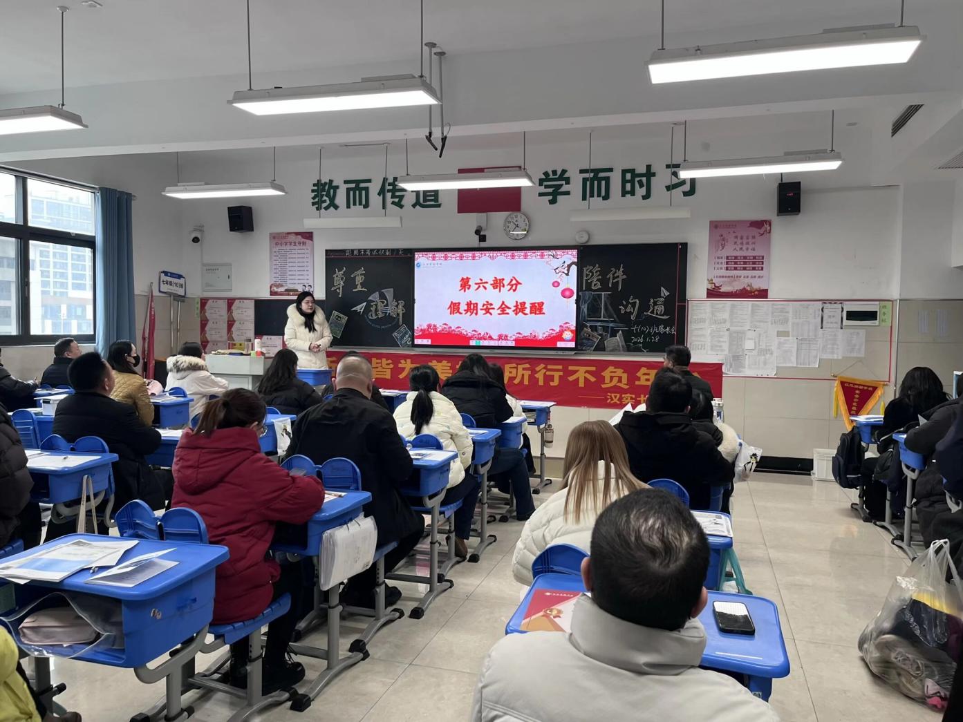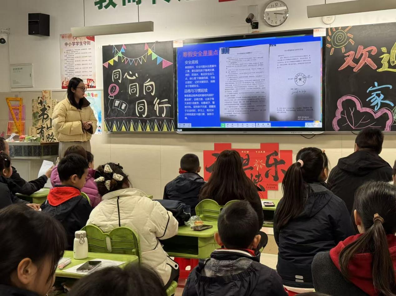 班主任及各科教师结合学生日常表现,细致反馈了本学期学业情况,同时聚焦下学期教学规划,明确了各学科的培养目标与重点方向,为家长提供了科学的家庭教育指导建议。针对即将到来的寒假,老师们着重强调了交通安全、消防安全、食品安全、防溺水安全等重点内容,提醒家长切实履行监护责任,做好假期安全教育与管控,引导孩子合理规划作息,度过一个安全、健康、有意义的假期。