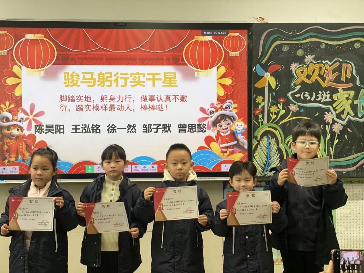 会上,各班级围绕学期总结与品格培养,表彰了一批表现优异的学生,评选出“骐骥担当领航星、驰马争先聪慧星、骏逸笃行自律星、骐马善思创新星、骏马躬行实干星”等星级学子。受表彰的学生们以身作则、各有专长,既是班级里的榜样力量,也彰显了我校以品格养成为核心的育人理念,鼓励全体学生以榜样为鉴,在成长路上奋勇争先。