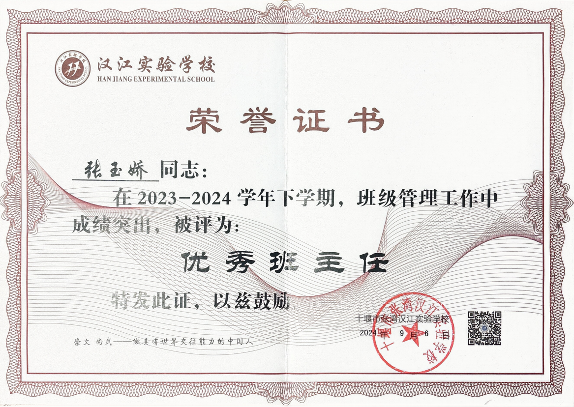 张玉娇老师在三重角色中自如转换,始终为学生的卓越成长奠基。她以课堂为根,深耕教学艺术;以团队为翼,推动共同进步;以年级为舟,护航全面发展。她用自己的智慧、汗水与情怀,诠释了新时代教师的全方位育人担当。