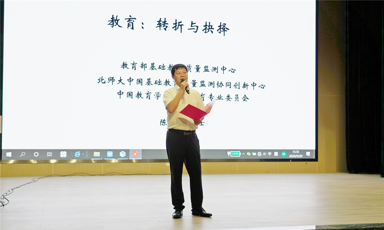 2020年9月20日,教育部基础教育质量监测中心培训项目负责人、北京师范大学教授、《北京师范大学——汉江实验学校教学质量提升项目》负责人陈锁明先生应邀在我校举行题为《教育:转折与抉择》的专题报告会。报告会特邀张湾区教育局所属部分学校干部教师、东风七中部分教师参加,含我校全体教职员工共计近200人聆听了陈锁明教授的精彩报告。
