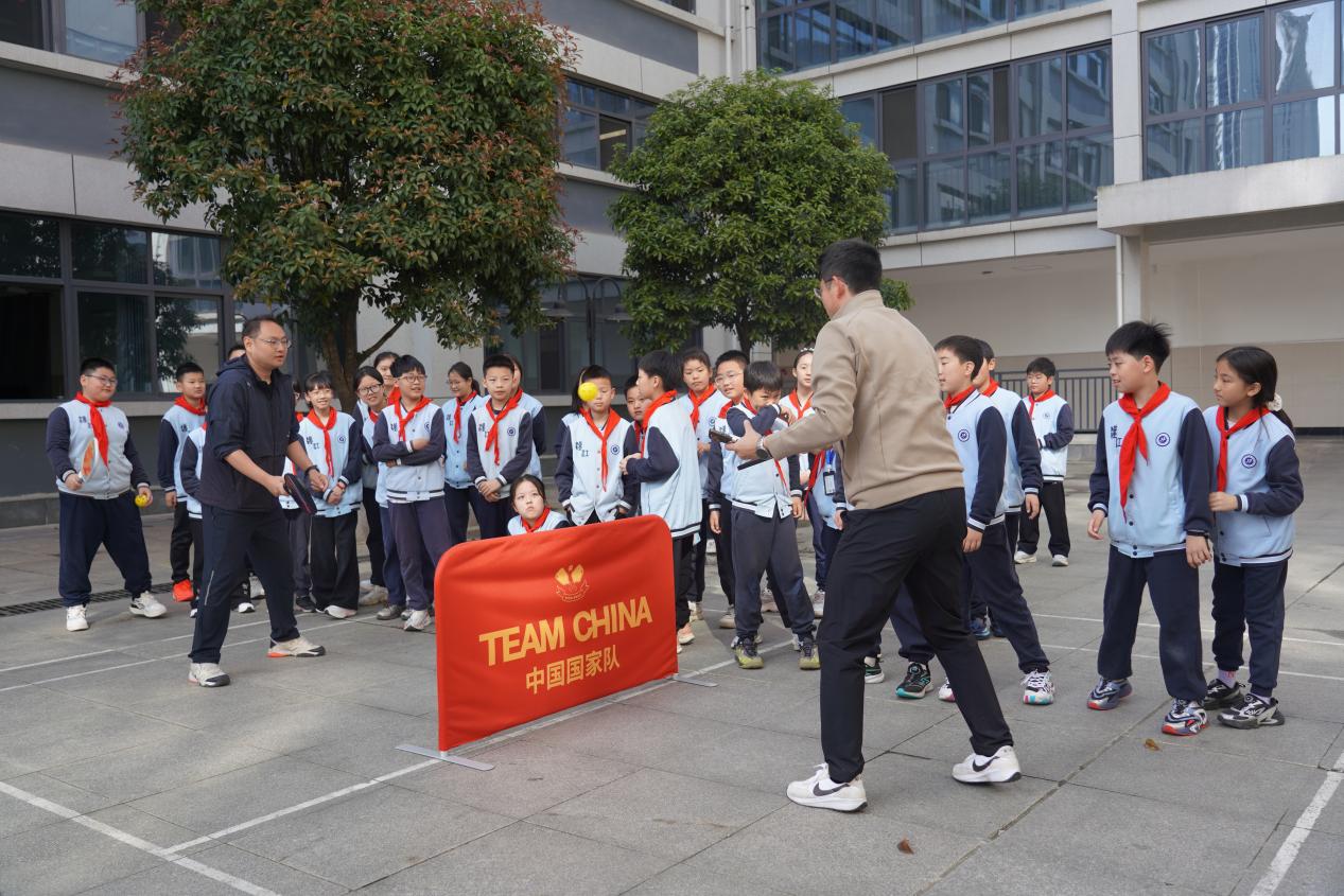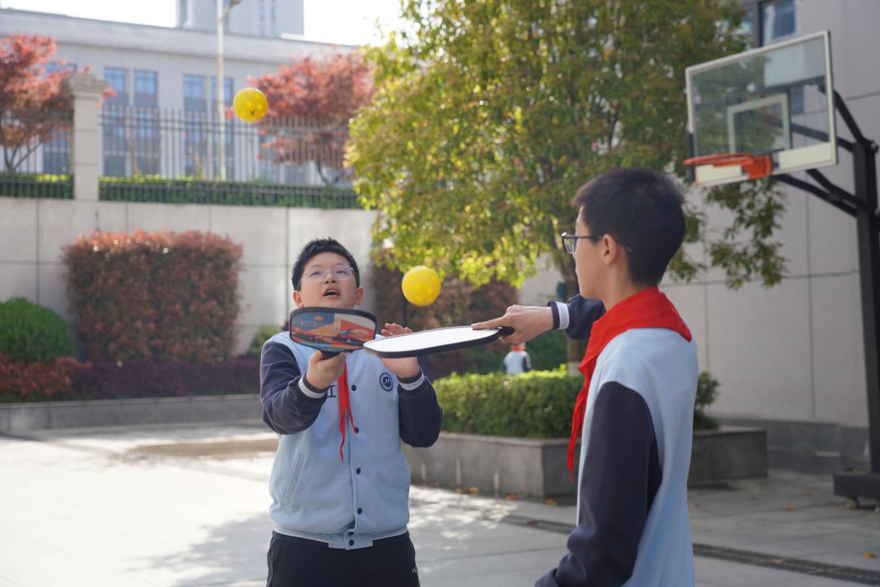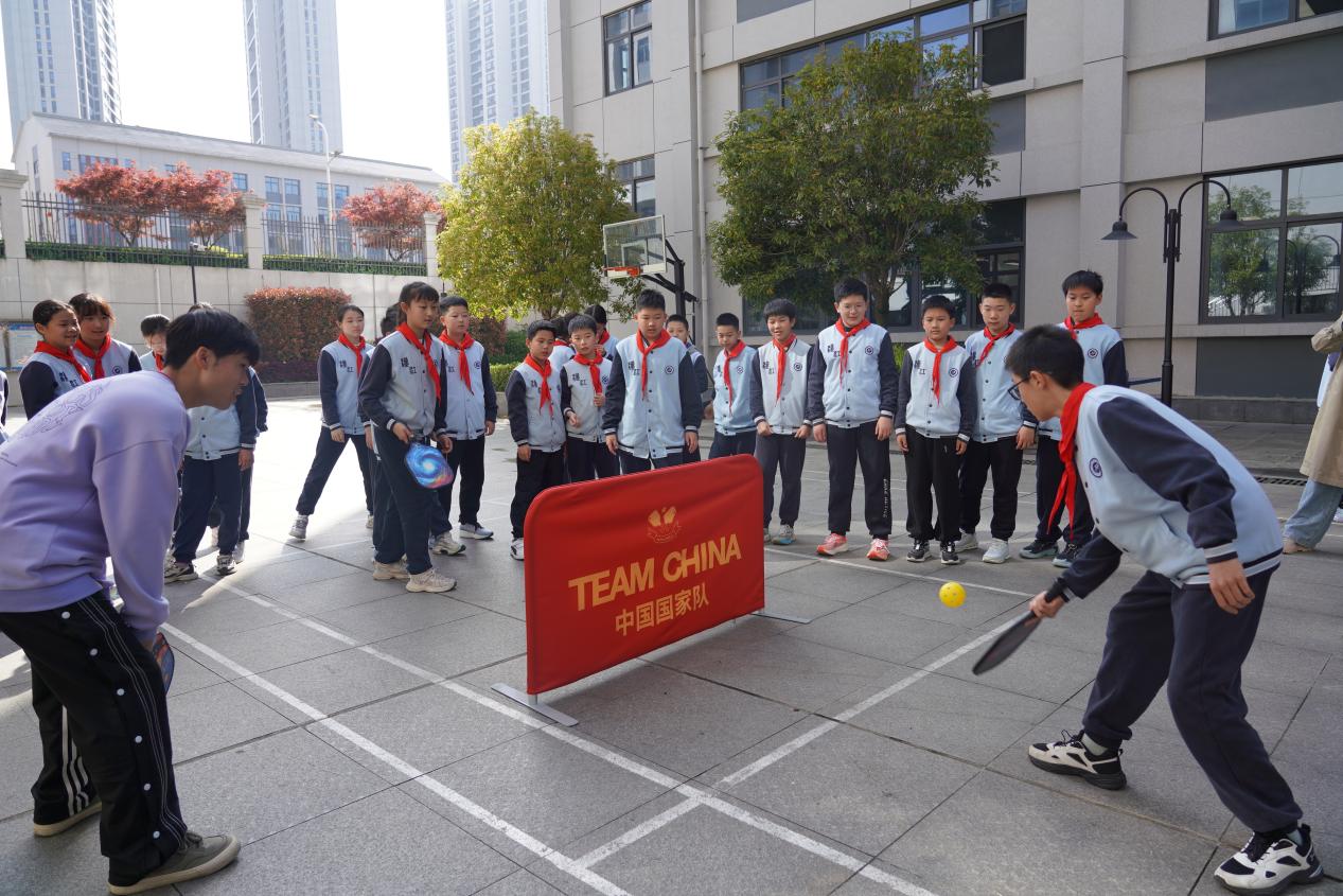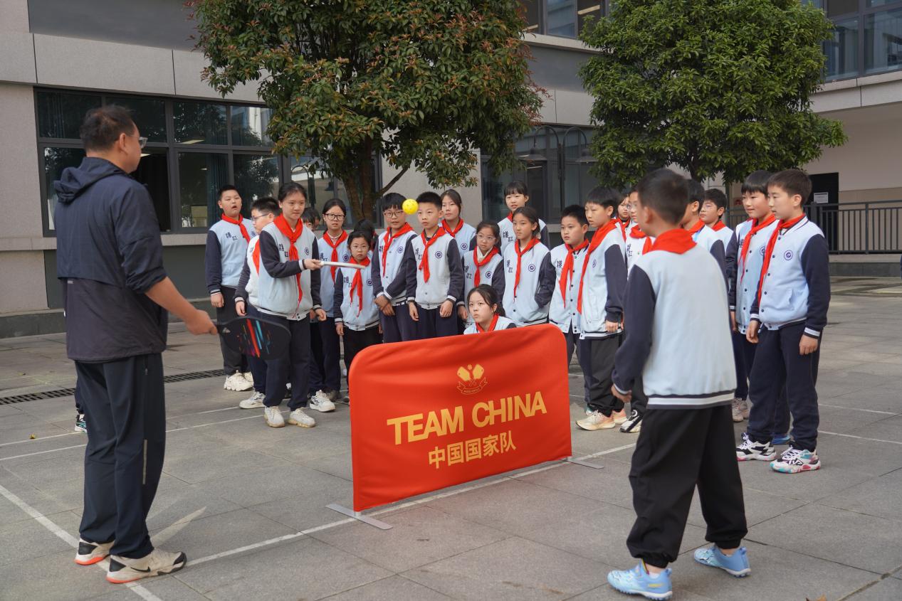 同学们轮流练习、分组互动。体验课上,孩子们有序模仿,从生疏到熟练,清脆的球拍声与欢呼声,成为大课间最动人的旋律。