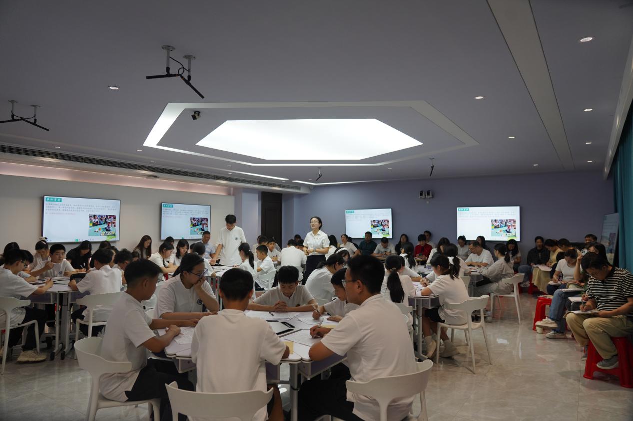 作为此次研讨会的承办单位,我校定期开展贯通式集体大教研,每周两次小教研,共同研读新课标,聚焦数学核心素养,研究数学高效课堂,深入分析学情,分享教学经验,探讨教学方式。我校深入推进教育教学改革,聚力提升育人成效。通过开展大教研活动,调动教师主观能动性,发挥集体智慧,探究各种课型教学基本模式。在复习课上,数学教师结合生活真实情境,提出关联复习主题,引导学生自主梳理,构建知识框架,把学法指导渗透在不同多样学习活动中,激发主动学习、主动探究、主动思考,设计有梯度的分层练习,查漏补缺,发展能力,积淀学生数学素养,让每一个孩子都有收获,让不同的孩子得到不同的发展。