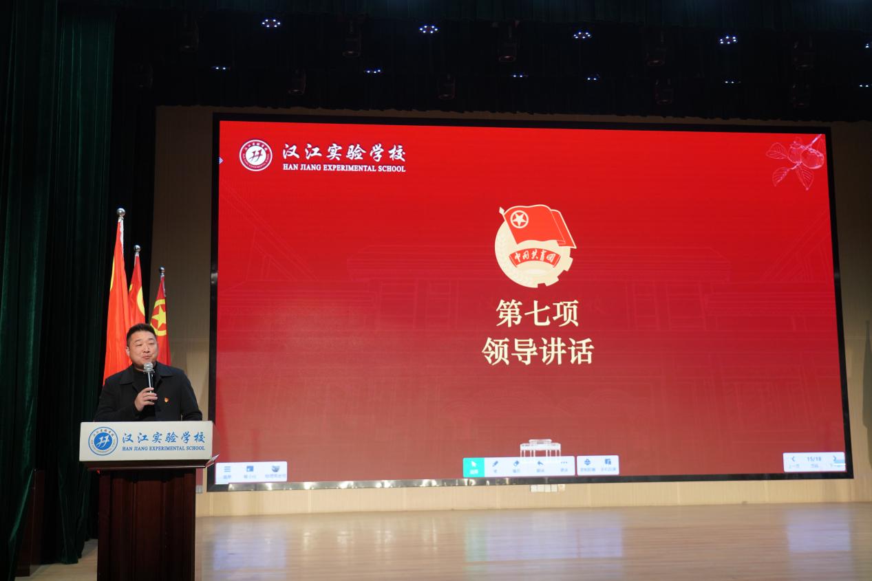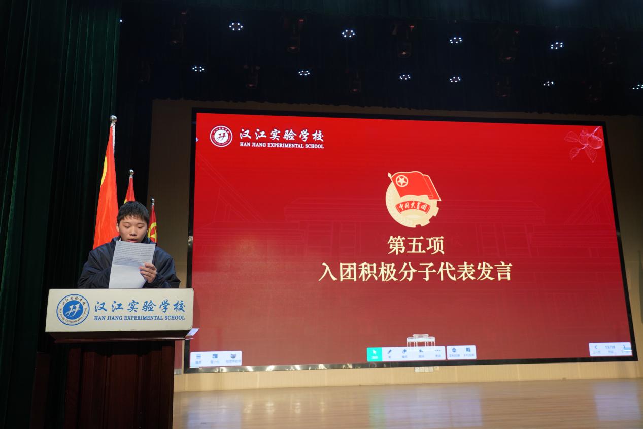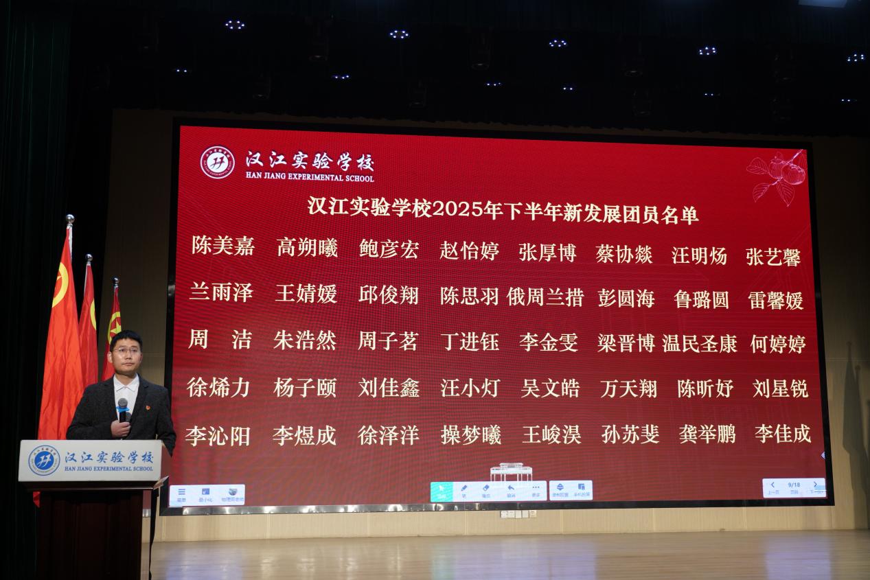 仪式现场,校团委书记周志鹏宣读汉江实验学校第四期入团积极分子名单与新发展团员名单。标志着一批青年学子即将完成从“向往”到“加入”的重要蜕变,开启属于自己的共青团生涯新篇章。