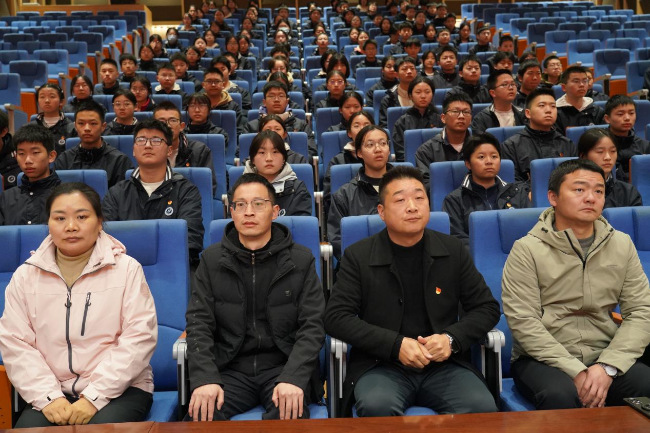 学校党支部书记、校长陈磊为全体团员送上殷切寄语。他对新加入共青团的同学们表示热烈祝贺,并从理想信念的筑牢、红色历史的传承、青年使命的践行、团组织建设的深化等多个维度,为青年学子们的成长指明方向。他勉励全体团员,要以“一二·九”运动中的爱国青年为榜样,在青春的赛道上奋力奔跑,努力成长为有理想、敢担当、能吃苦、肯奋斗的新时代好青年,让青春在为祖国、为人民的奉献中绽放绚丽之花。